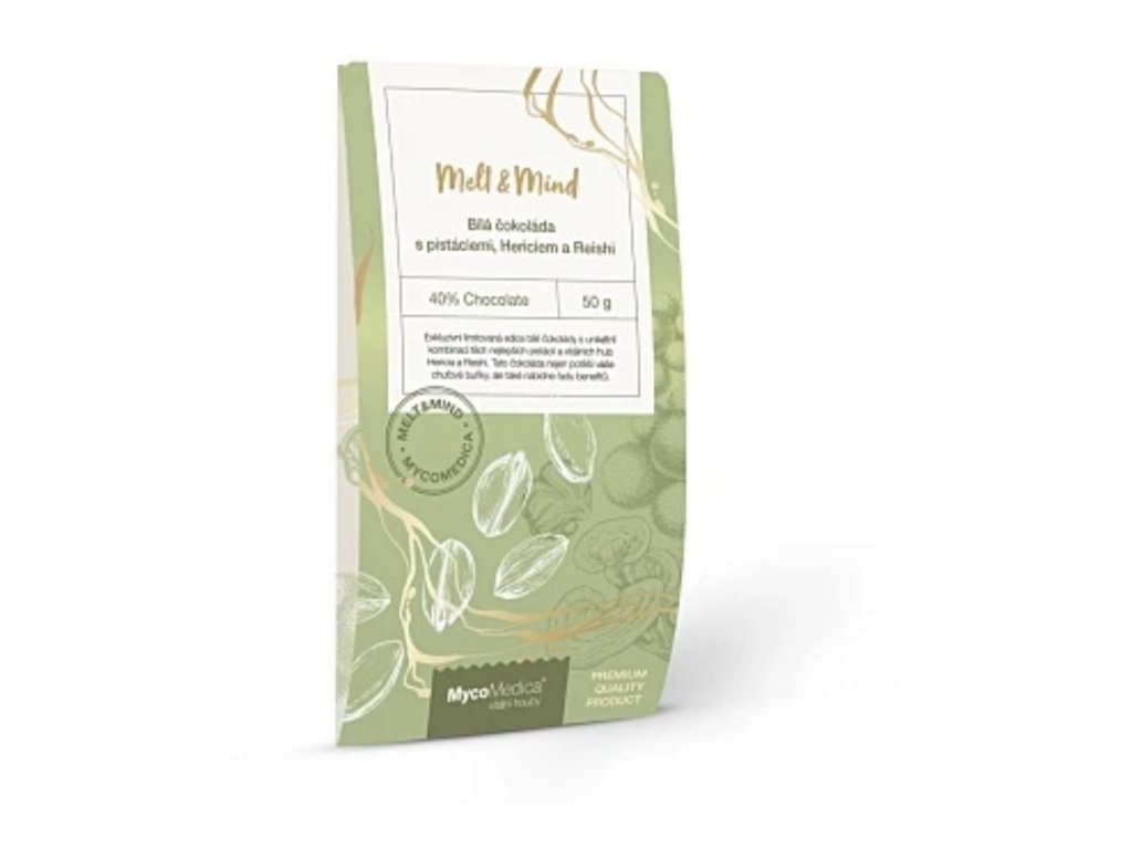 MYCOMEDICA Biela čokoláda s pistáciami heríciom a reishi 50 g