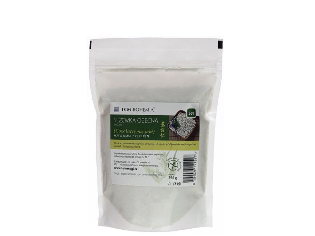 Popis produktu Slzovka obyčajná (tiež Jóbove slzy, čínsky YI YI REN, japonsky Hatomugi) je jednou z najdlhšie pestovaných obilnín na svete. Bola základom stravy v starom Egypte, Palestíne či Grécku. Tieto semená divokej trávy, ktoré sú podobné jačmeňu, majú silné čistiace účinky a používajú sa na detoxikáciu organizmu. Slzovka podporuje funkciu sleziny, pomáha tráveniu mäsa a tukov. Má priaznivý vplyv na pleť. Je vhodná ako prídavok do kaší, polievok alebo zdravotných čajov.