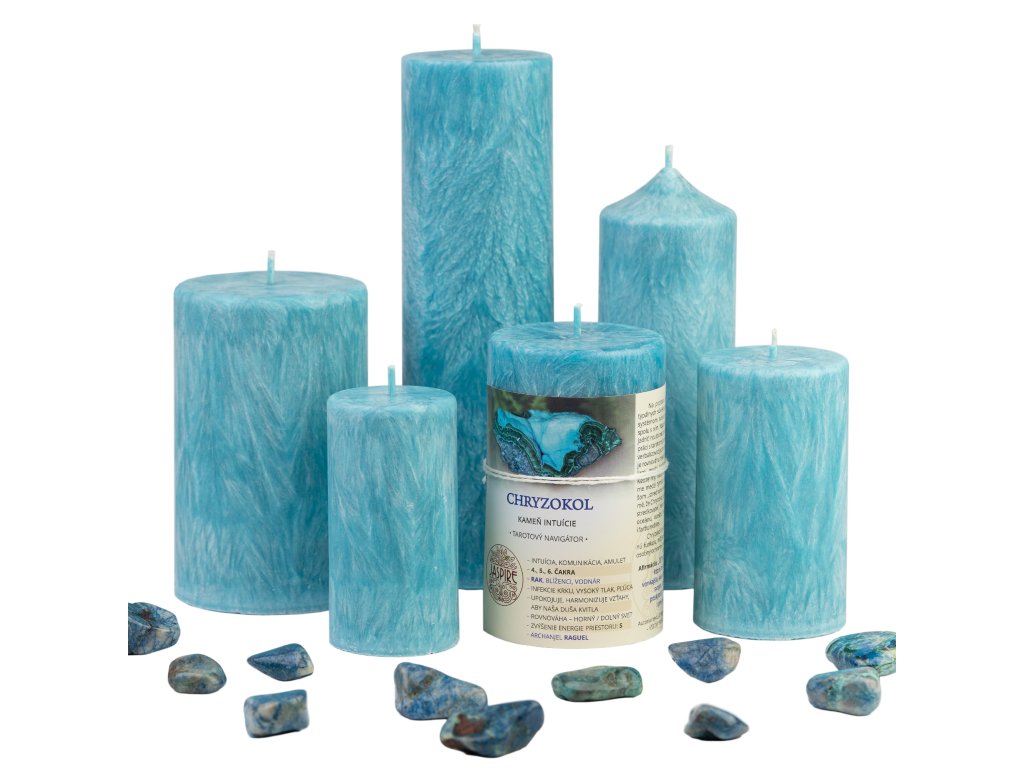 Sviečka JASPIRE® s energiou kameňa Chryzokol